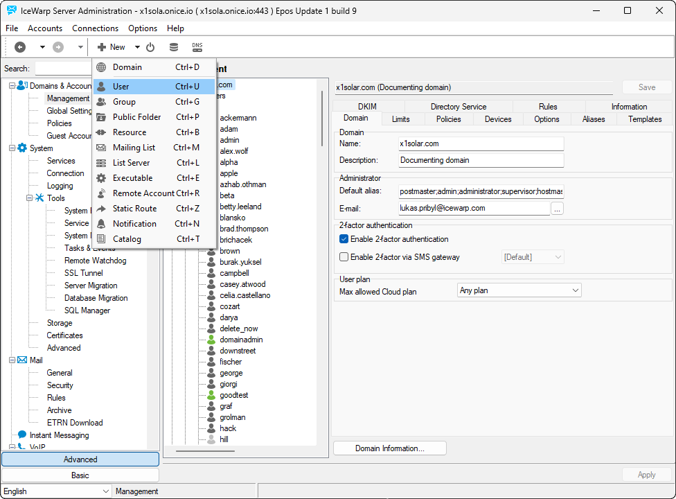 In Remote Console and WebAdmin you can administer your IceWarp Server: manage services and connection, configure groupware, create policies, add new users and groups of users.