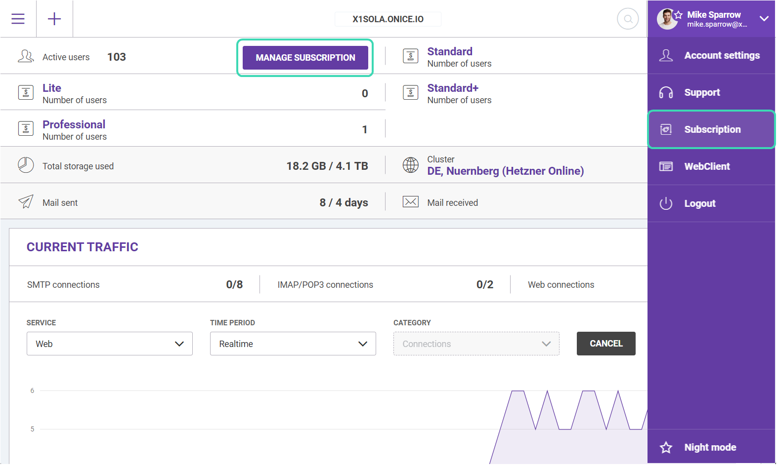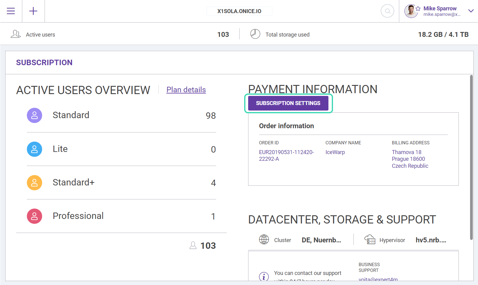 With the Subscription Management Interface you can see your subscription plan, Order ID, the last and the next billing date, manage your subscription settings, cancel your subscription, etc.