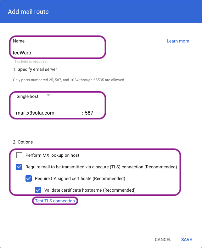 We will use "x3solar.com" to demonstrate the setup in the steps below. Before you continue, it is important to mention that the IceWarp Server must be configured first (you must be able to send and receive e-mails from and to your IceWarp Server); therefore, have the DNS and domain certificate (for example, Let's Encrypt) in place before setting up Google Workspace.