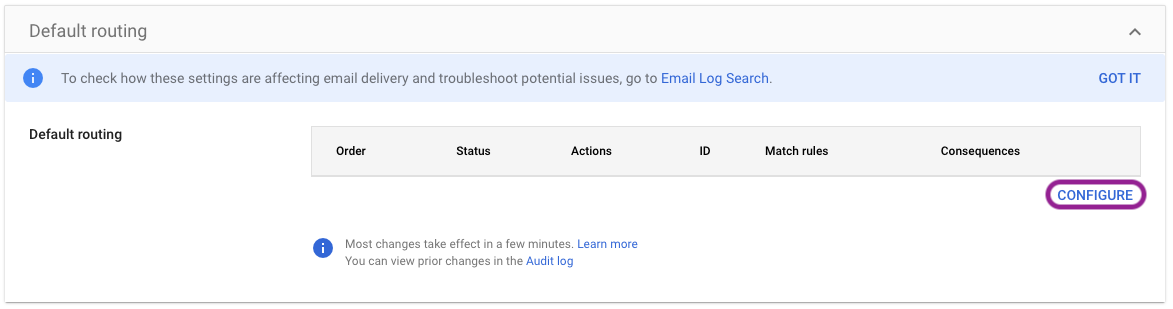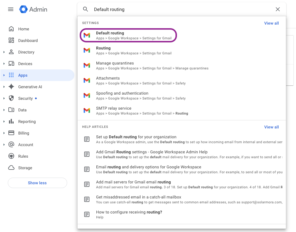 Go to the Google Workspace Admin center -> Apps -> Google Workspace -> Gmail (or Settings for Gmail) -> Default routing. You can also use a search bar.