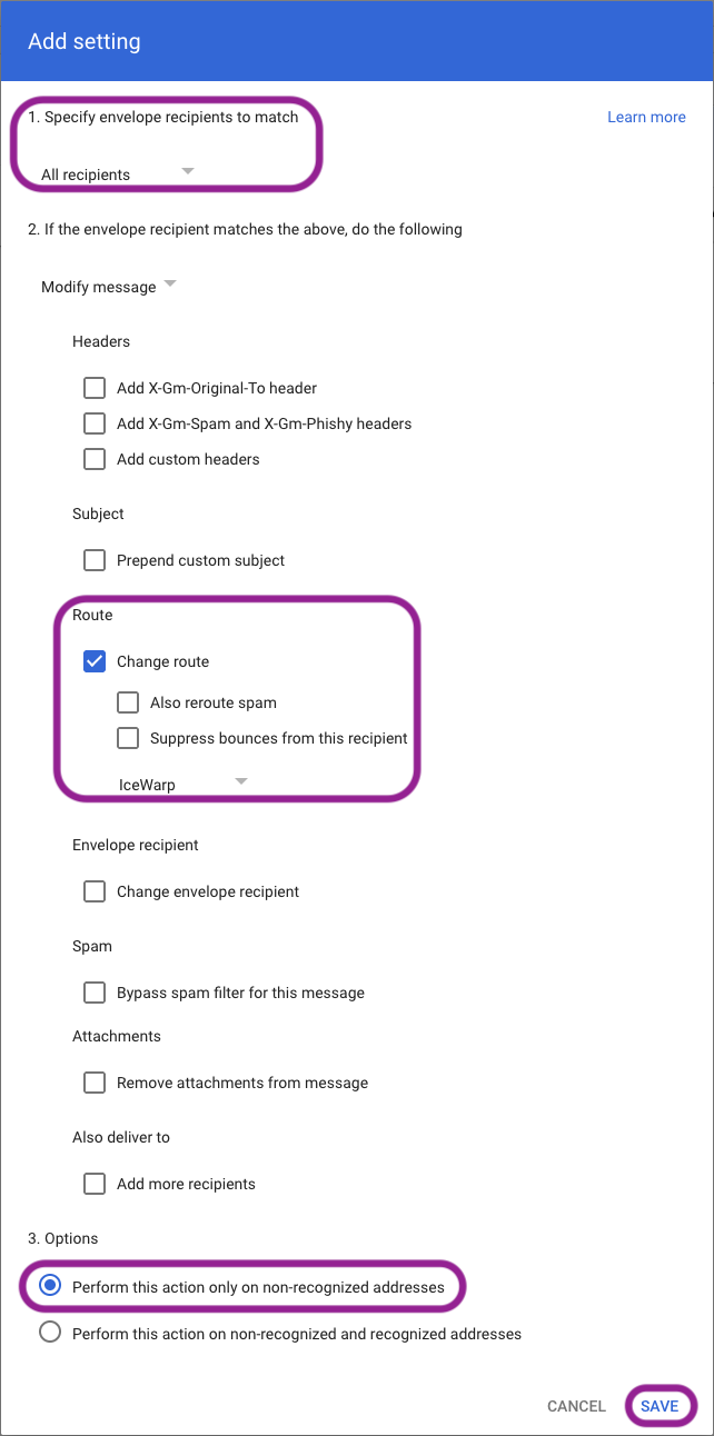 Set up a new routing rule and direct it to the designated IceWarp host.